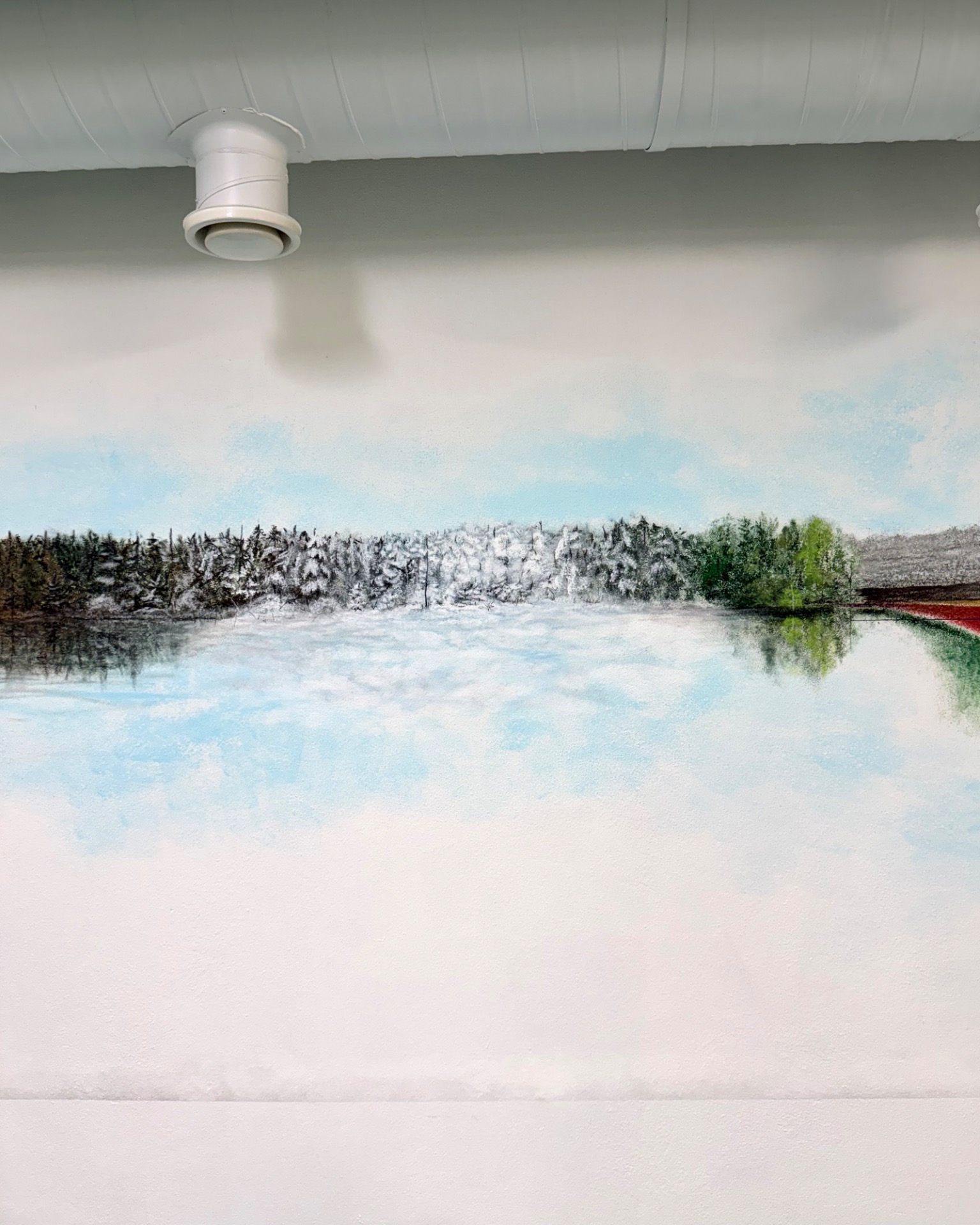 Valimo Centerin kuntosali uudistettiin ja he tilasivat sinne seinämaalauksen, johon sain vapaat kädet toteutukseen. Juoksijalegenda Paavo Nurmi yhdistää Nurmi-Yhtiöt Oy:n omistaman Valimo Centerin ja urheilun täydellisesti, joten hän toimi maalauksessa inspiraationa. Maalauksessa juoksijan ympärivuotinen harjoittelulenkkipolku huipentuu kilparadaksi, ja yhteen Nurmen yhdeksästä olympiakultamitalin voittohetkistään. Nostin myös hänen juoksu-uran menestyshetkiä erilliseen teokseen aikajanan muodossa (lähteenä käytin www.paavonurmi.fi)